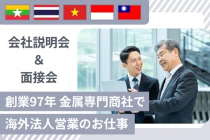 仕事内容 | 【仕事内容】 金属メーカーからの買い取り、そして自動車や電子部品、医療機器、航空機メーカーなどへの販売を担当します。 ●主な業務内容 ・お客様の「欲しい金属」「必要な量」「納期」をヒアリング ・金属メーカーと打ち合わせして、価格や品質を確認 ・見積もり提案、契約、材料手配、納品までスケジュール管理 ・国内だけでなく、中国・東南アジアなど海外の案件もあり、グローバルな経験が積めます! ●入社後のフォロー ・最初の1~2週間は、会社や業務の基礎を学ぶ研修からスタート。 ・実務は先輩がしっかりOJTでサポート。お客様との商談や材料手配など一つひとつ学べます。 ・静岡の工場やお客様の工場を見学して、実際の製品理解も深まります。 ・早ければ半年後には自分の担当顧客を持つことも!焦らず成長できる環境です。 |