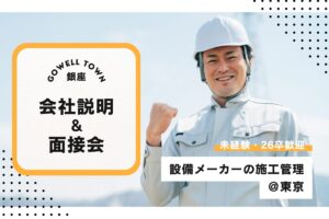 【10/06開催】未経験・26卒歓迎★設備メーカーの施工管理@東京 会社説明&面接会